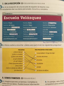 Wir haben unter anderem gelernt, wie man sich vorstellt, die Zahlen auf spanisch, das Alphabet auf spanisch, verschiedene Berufe auf spanisch, wie die Länder auf spanisch heißen und noch ganz viele Vokabeln.