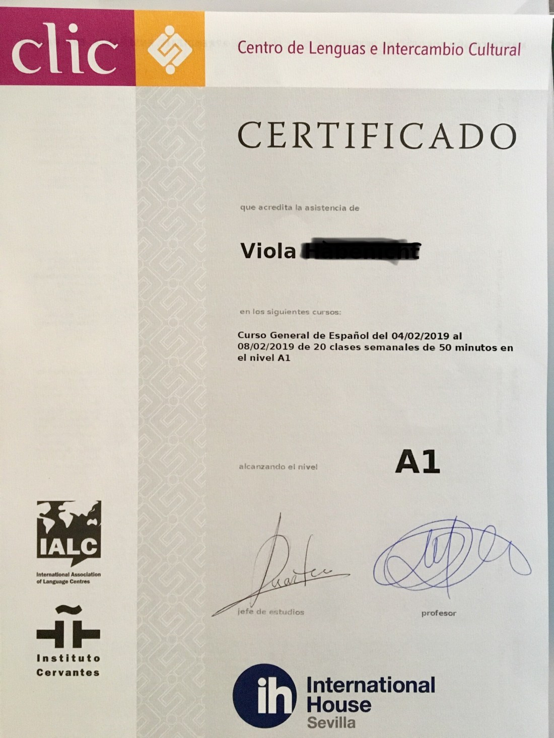 Am Freitag nach der letzten Stunde haben wir ein Zertifikat bekommen und ein Zeugnis.